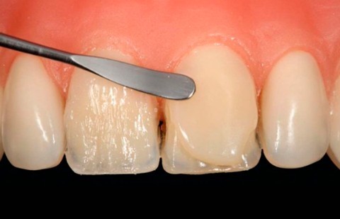 Здесь композитные пластины создаются в стоматологической лаборатории по оттискам зубов. Врач крепит их к зубам клеем. Этот метод требует более длительного времени: на первом визите готовят поверхность, а на втором прикрепляют пластины и делают их окончательную обработку.